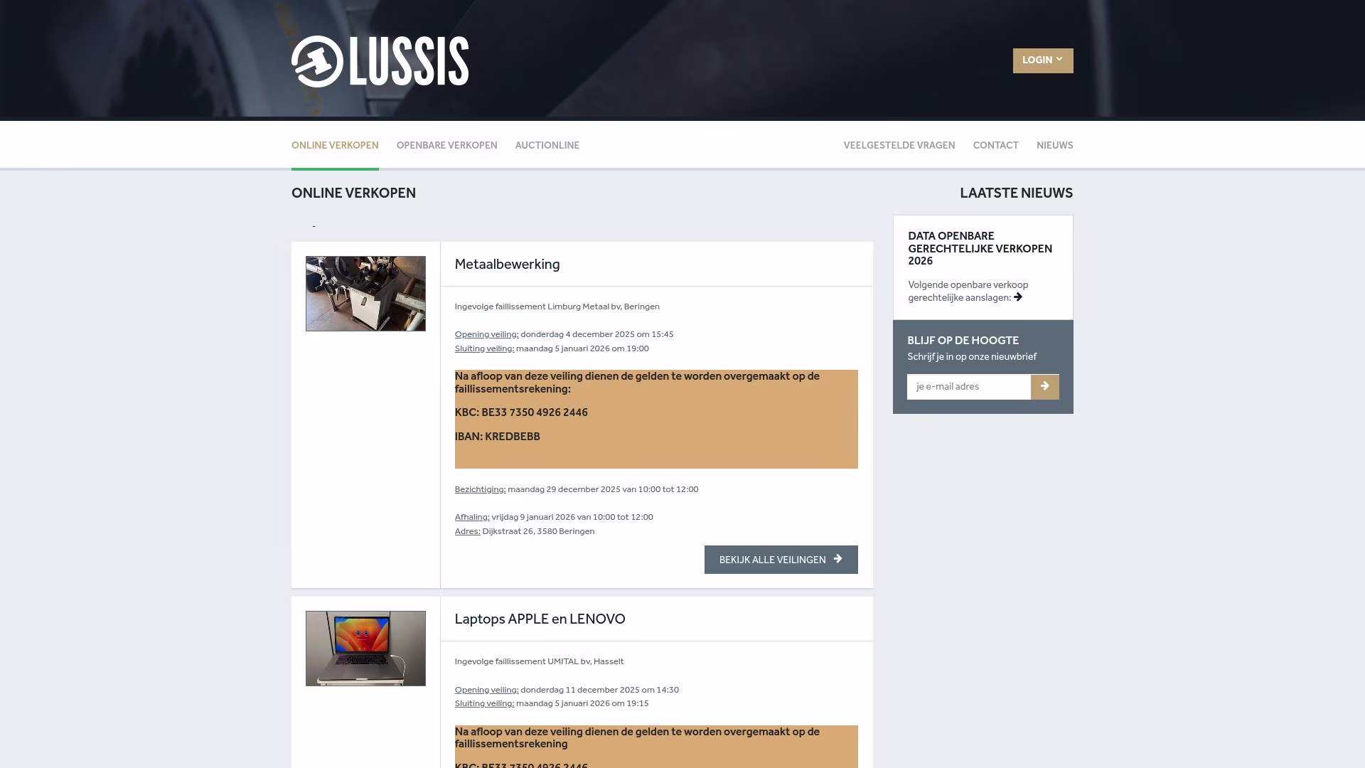 For buyers in Wallonia and Northern France, Lussis is a key marketplace. They offer both physical viewing and online bidding capabilities. Their “Vente Judiciaire” (Judicial Sale) label often attracts bargain hunters looking for assets sold without reserve. Key keywords: “judicial auction Liege,” “seized vehicles,” “salle de vente Belgique,” “estate auction.”